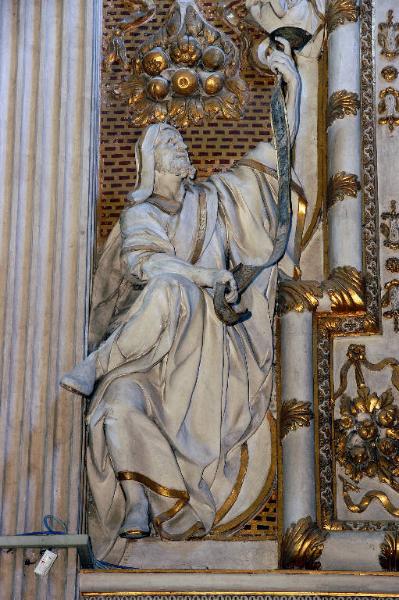 - NOTIZIE STORICO CRITICHE Non c'è nei documenti contabili della Congregazione della Misericordia Maggiore, una menzione esplicita della grande cornice ornata di angeli e profeti che racchiude il "Sacrificio di Noè" di Federico Cervelli: a mio avviso, la data del dipinto (1678), potrebbe fornire il termine ante quem per l'esecuzione degli stucchi, mentre il termine post quem potrebbe essere fissato al 1659, l'anno in cui Giovanni Angelo e Gerolamo Sala cominciano i lavori per la decorazione del transetto sinistro.\nAndrea Spiriti (2009), per spiegare il tono più libero e dinamico di questa parte della decorazione, evidente soprattutto nelle grandi figure di profeti, suggerisce l'ipotesi di un intervento, almeno in fase di progettazione, di Giovanni Battista Barberini, che è però documentato a Bergamo solo nel 1683.