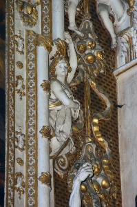 Figura di angelo in funzione di cariatide, con il braccio destro piegato.