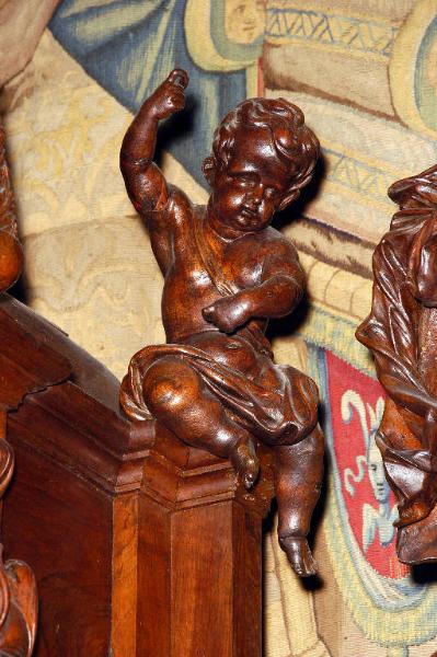 - NOTIZIE STORICO CRITICHE La statuetta appartiene al confessionale scolpito da Andrea Fantoni tra il 1704 e il 1705 per il Duomo di Bergamo, su commissione del canonico Giovan Pietro Mazza.\nL'opera ha subito un delicato intervento di restauro nel 1999, a cura di Eugenio e Luciano Gritti del Consorzio Professionale Restauratori d'Arte (l'intervento è descritto in dettaglio in Curatola/ Gritti/ Zanchi, 2000, pp.44-53).
