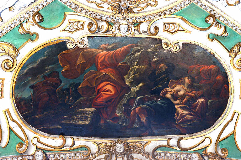 - NOTIZIE STORICO CRITICHE Il dipinto, dedicato al celebre episodio biblico narrato nel libro dell'Esodo (17, 1-7), è firmato da Pietro Mango, un pittore di origine napoletana di cui non sappiamo molto. L'iscrizione posta in basso a sinistra riassume i pochi dati biografici noti sull'autore; la data, che è stata probabilmente mal ridipinta, informa che l'opera è stata realizzata nel 1661, mentre il nome di Pietro Mango, nei documenti della Basilica, compare solo nel 1656. \nNei libri contabili della Misericordia Maggiore, infatti, un appunto datato al 31 maggio di quell'anno riferisce che Pietro Mango "pittore Napoletano, che di presente serve all'Altezza Serenssima di Mantova" è autorizzato a preparare un quadro di presentazione per i deputati della MIA, che sarà poi pagato "qello che parerà conveniente al Mag. Consiglio"; qualche mese dopo, il 4 agosto, l'artista ricevette un pagamento di 200 lire a saldo del suo lavoro (Noris, in "I pittori bergamaschi...Il Seicento", vol. IV, p. 164, scheda 3). \nL'opera è stata probabilmente restaurata da Franco Steffanoni nel 1960; nella relazione in data 24 maggio 1961, si accenna infatti alle operazioni eseguite su "10 dipinti su tela" posti nella navata meridionale, non elencati singolarmente, forse da identificare con quelli collocati sulle volte e sulle pareti del braccio meridionale del transetto (doc. in data 24 maggio 1961, prot. 1232, cat. 5, clas. 6, fasc. 17, Archivio Congregazione Misericordia Maggiore, Bergamo).