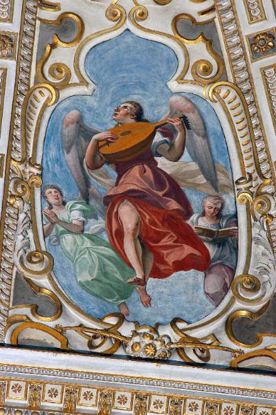 - NOTIZIE STORICO CRITICHE Il riquadro con figure di angeli è stato eseguito tra il 1615 e il 1616 da Giovan Paolo Cavagna (L. Bandera, in "I pittori bergamaschi...Il Cinquecento", vol. IV, p. 136 e pp. 180-181, schede 25-27) . \nL'opera è stata restaurata nel 1961 da Franco Steffanoni (cfr. doc. in data 5/ 12/ 1961, protoc. 2579, pratica 4643, cart. 89, Archivio Congregazione Misericordia Maggiore, Bergamo).