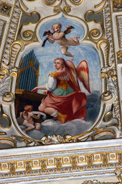 - NOTIZIE STORICO CRITICHE Il riquadro con figure di angeli è stato eseguito tra il 1615 e il 1616 da Giovan Paolo Cavagna (L. Bandera, in "I pittori bergamaschi...Il Cinquecento", vol. IV, p. 136 e pp. 180-181, schede 25-27). \nL'opera è stata restaurata nel 1961 da Franco Steffanoni (cfr. doc. in data 5/ 12/ 1961, protoc. 2579, pratica 4643, cart. 89, Archivio Congregazione Misericordia Maggiore, Bergamo).
