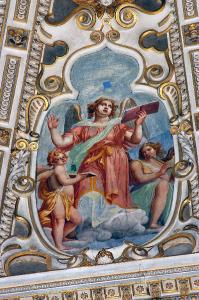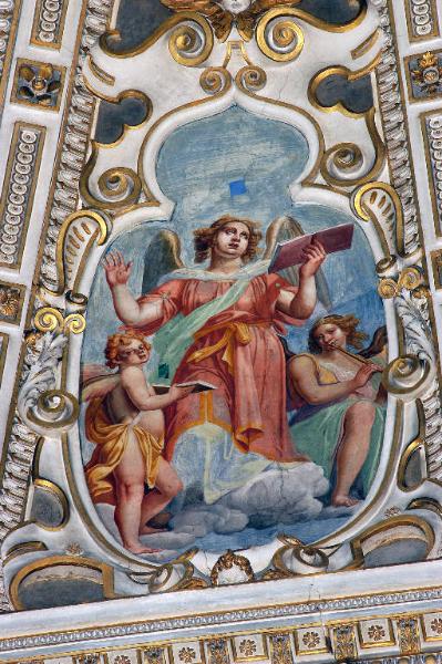 - NOTIZIE STORICO CRITICHE Il riquadro con figure di angeli è stato eseguito tra il 1615 e il 1616 da Giovan Paolo Cavagna (L. Bandera, in "I pittori bergamaschi...Il Cinquecento", vol. IV, p. 136 e pp. 180-181, schede 25-27). Pesenti ha proposto di identificare questo gruppo di angeli con uno dei due che, secondo i documenti, Francesco Zucco avrebbe eseguito nel 1615 (Pesenti, in "I pittori bergamaschi...", cit., p. 410, scheda 9). \nL'opera è stata restaurata nel 1961 da Franco Steffanoni (cfr. doc. in data 5/ 12/ 1961, protoc. 2579, pratica 4643, cart. 89, Archivio Congregazione Misericordia Maggiore, Bergamo).