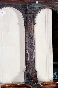 Pilastrino intagliato sulla faccia verso l'interno del coro con motivi a candelabra nei quali, tra i racemi vegetali, si alternano vasi, uno stemma e un mascherone; il capitello è di tipo composito con un mascherone e foglie di acanto sul calato, volute e foglie sull'echino e sull'abaco; sulle facce minori, interne alle bifore, sono addossate due semicolonne scanalate e rudentate, una delle quali a tortiglione.