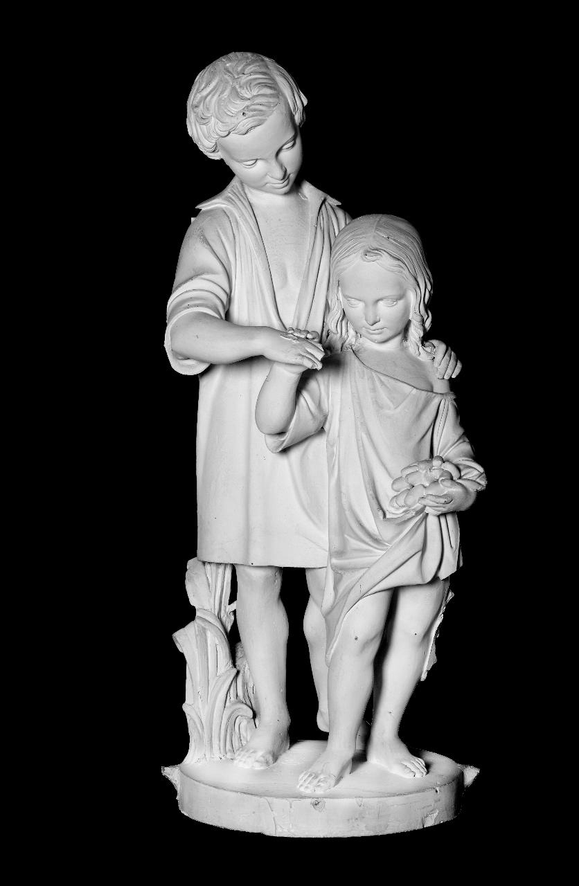 - NOTIZIE STORICO CRITICHE Modello per il gruppo in marmo eseguito da Ferdinand Müller, scultore di corte di Georg II von Sachsen-Meiningen, intorno al 1862. L'opera raffigura due figli del duca e della sua prima moglie Charlotte: Bernhard, nato nel 1851, e Marie Elisabeth, nata nel 1853. La versione in marmo fa parte delle collezioni della Stiftung Preußische Schlösser und Gärten Berlin-Brandenburg.