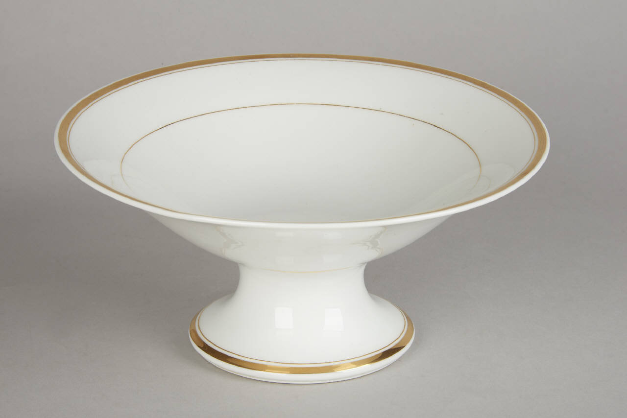 Alzata con decorazione riservata a filetto e sottile fascia in monocromia oro.