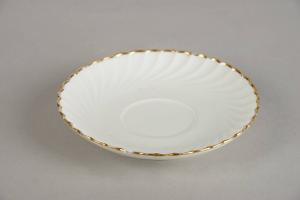 Piatto tondo con decorazione riservata a filetto e sottile fascia in monocromia oro.