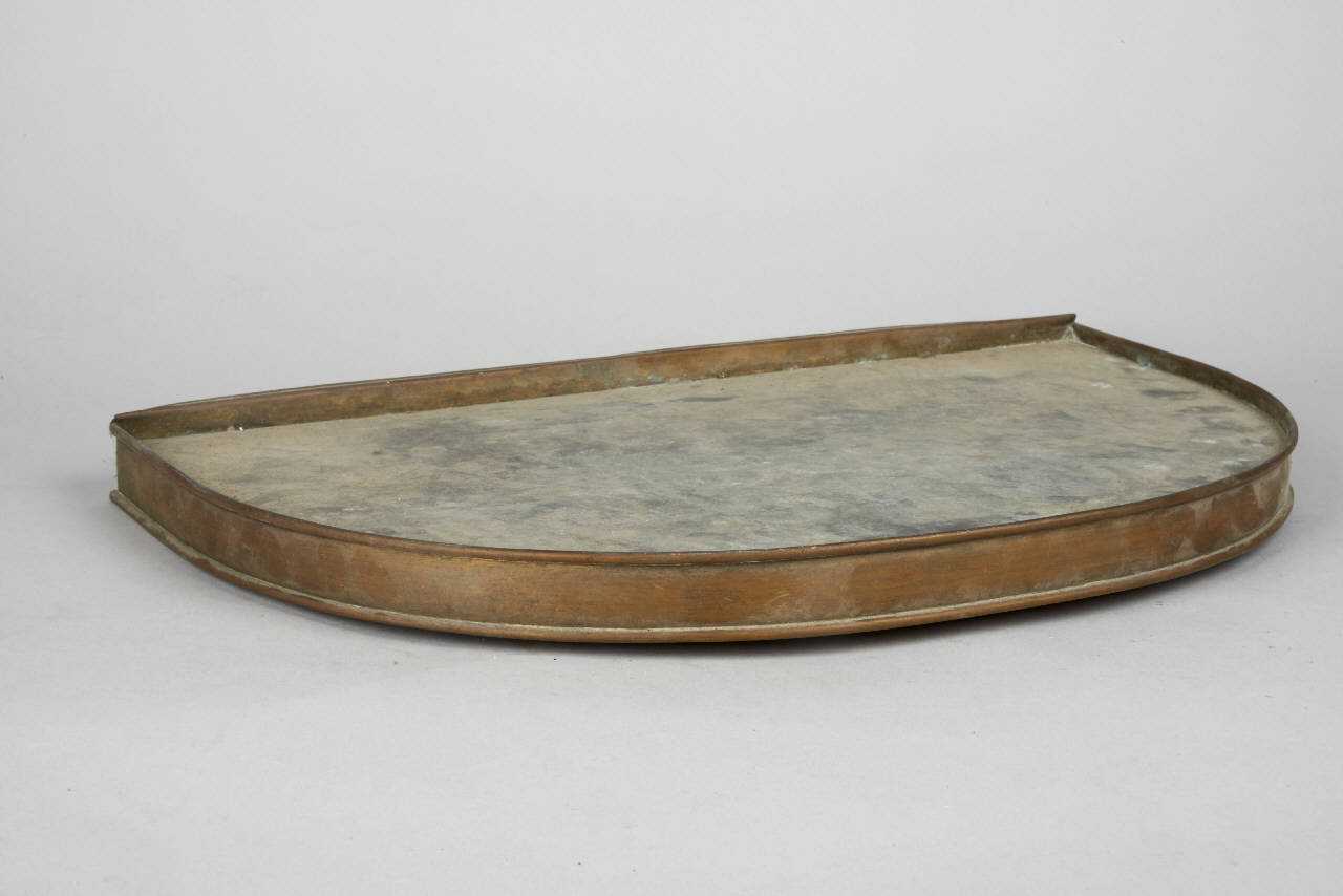 Vassoio semicircolare con bordo in ottone, privo di decorazioni.