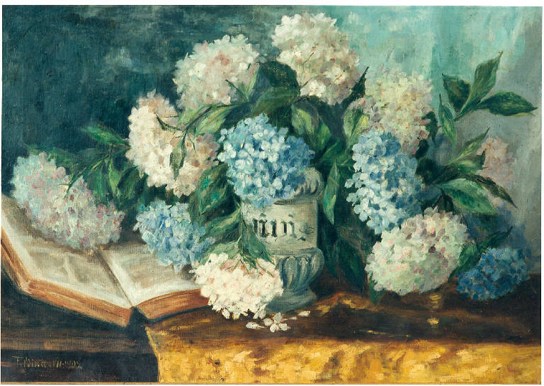 - NOTIZIE STORICO CRITICHE Il dipinto è stato realizzato da Clotilde Brusaferri Panciera di Zoppola,allieva di Luigi Campini e Cesare Bertolotti, le cui opere, per la maggior parte di tema floreale, sono variamente documentate alle esposizioni del cenacolo artistico "Società per l'Arte in famiglia" di cui la pittrice fu socio onorario. Fu anche presidente della sezione Madri dei Combattenti del Fascio Nazionale Femminile per la Resistenza (1918). L'opera è forse il pendant del dipinto "Vaso di gigli con immagine della Vergine", eseguito nel mese precedente dalla pittrice nel medesimo formato. Inedito.
