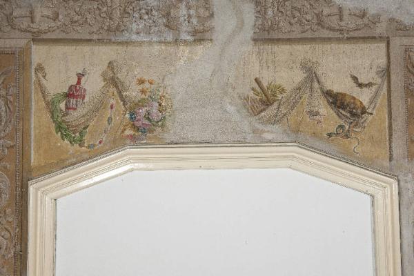 La decorazione pittorica si compone di un curioso festone fatto di drappi annodati che nelle anse ospitano animali, nature morte, vasi di fiori e struementi musicali.