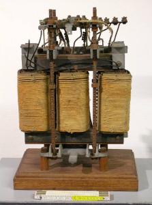L'oggetto è costituito da un corpo con tre avvolgimenti, fissato ad una base di legno