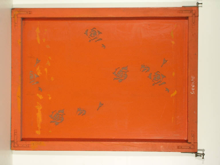 L'oggetto è costituito da una cornice di legno sulla quale è teso e fissato con chiodi il buratto fotoinciso. Due viti metalliche alle estremità di un lato corto servono per fermare il quadro nelle apposite sedi fissate lungo la guida in ferro che corre parallela al tavolo da stampa: la loro funzione è segnare il rapporto del quadro. Il buratto è dipinto a mano e ciò rende "piatto" cioè privo di sfumature il risultato del loro uso a stampa.