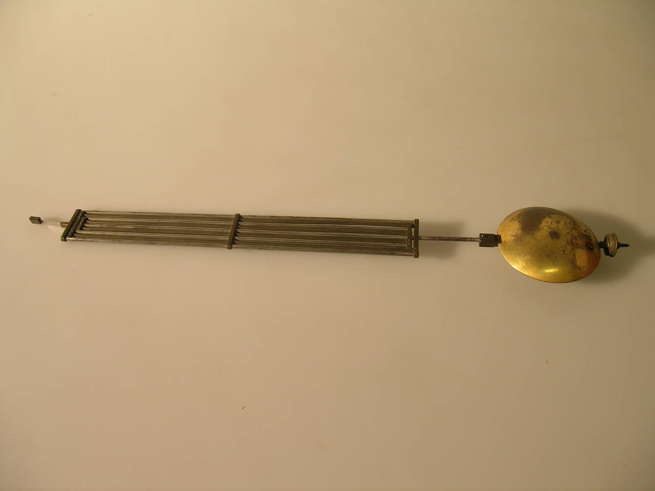 Si tratta di un pendolo costituito da una serie di asticelle di ottone e di ferro connesse fra loro in modo tale che le rispettive dilatazioni, dovute alle variazioni di temperatura, si compensino, evitando così ritardi o anticipi nel funzionamento degli orologi.\nIl punto di sospensione del pendolo è nel centro di una sbarretta trasversale alla quale sono unite due verghette di ferro, tenute fra loro inferiormente da una seconda sbarretta trasversale. Questa supporta a sua volta due verghette di ottone, riunite superiormente da una terza sbarretta. La costruzione è ripetuta in modo da avere 5 verghette di ferro e 4 di ottone. Le sbarrette sono fatte in modo da lasciar scorrere le verghette che non sostengono.