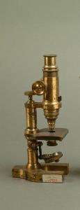 Su una base a ferro di cavallo è fissata una colonnina di ottone che regge il portaoggetti e il tubo ottico. Sopra il portaoggetti, rettangolare e dotato di un foro centrale, poteva essere fissato il dispositivo per fissare i vetrini (oggi mancante). Sulla colonnina di ottone, sotto il portaoggetti era fissato uno specchietto orientabile per l'illuminazione dei preparati. Sotto il portapreparati si trova una ghiera nella quale è inserito il supporto per la lente condensatrice . Il tubo ottico scorre grazie a un pignone a cremagliera manovrabile con due viti che si trovano ai lati del tubo stesso.