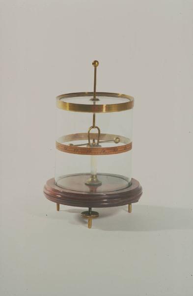 Lo strumento è racchiuso in una custodia cilindrica di vetro appoggiata su una base circolare di legno munita di tre piedini calanti per livellarlo al piano d'appoggio, nell'ipotesi che questo sia orizzontale. Una colonnina di vetro, che si innalza dal centro della base dello strumento, regge una piccola piattaforma di ottone, al centro della quale è fissata una punta che sostiene l'equipaggio mobile, parte centrale dello strumento. L'equipaggio mobile, sostenuto da una punta, è una lancetta costituita da un leggero filo metallico, su cui è fissato un piccolo ago magnetico disposto parallelamente. Dalla piattafoma di ottone sporgono lateralmente, all'altezza della lancetta, due asticciole terminanti con piccole sfere, le quali hanno la funzione di indici fissi. Poggiandosi alla piattaforma e innalzandovisi al di sopra si trova un ponticello su cui è montata una sbarretta verticale, che fuoriesce dalla custodia di vetro terminando con una sferetta. Questa sferetta presenta due buchi, uno dei quali filettato, che appunto serve per avvitare la stessa; l'altro liscio, che probabilmente serviva per inserire altri dispositivi, come ad esempio un condensatore. Sulla superficie esterna del contenitore cilindrico è incollata una striscia di carta graduata suddivisa in quattro parti, ognuna con divisioni ogni due gradi, da 0° a 90°.