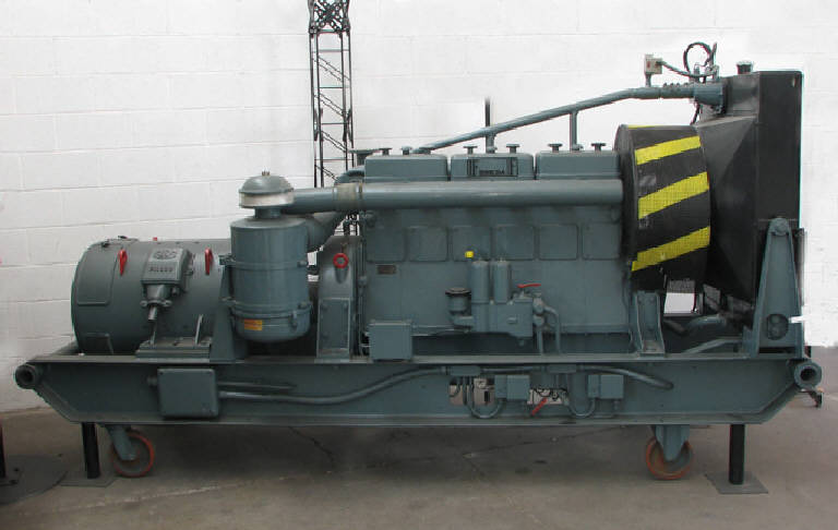 Gruppo elettrogeno costituito da un motore termico, e un generatore di corrente alternata. \nIl motore è ciclo diesel, quattro tempi, a 6 cilindri in linea, con alesaggio di 128mm e corsa di 148mm per una cilindrata unitaria di 1903mm3 e cilindrata totale di 11420mm3, in grado di esprimere una potenza di 100KVA a 1500 giri/min, sovralimentato con turbine a gas di scarico.\nIl basamento del motore è costituito da un monoblocco ricavato mediante lavorazione meccanica da una fusione in lega speciale di alluminio. Nel basamento sono presenti i sei alloggiamenti destinati a ricevere le sei camicie dei cilindri, i supporti dell'albero a gomiti e dell'albero della distribuzione. I cilindri sono in ghisa centrifugata e di tipo "bagnato" (ovvero lambiti direttamente dall'acqua di raffreddamento). Ogni due cilindri si ha una testa ricavata da fusioni in ghisa speciale. Le bielle sono ricavate da stampati di acciaio speciale. I cuscini di testa sono costituiti da semigusci in acciaio rivestiti di metallo antifrizione, quelli di piede, da boccole in bronzo sinterizzate. Le bielle sono montate sull'albero a gomiti ricavato, mediante lavorazioni di alta precisione, da un forgiato di acciaio al nichel ad alta resistenza. I perni di banco e di biella sono induriti superficialmente mediante appropriati trattamenti termici.\nL'iniezione è del tipo indiretto in precamera, a bassa pressione (120bar) ed è realizzata mediante pompa monoblocco a sei pompanti. La sovralimentazione è ottenuta mediante turbocompressori a gas di scarico. Il raffreddamento è realizzato mediante radiatore acqua/aria.\nIl generatore è di tipo autoregolato con isolamento tropicale. \n\nGENERATORE AUTOREGOLATO\nANTON PILLER KG - OSTERODE / HARZ\nTipo NSyk 4 - 923\nN. generatore D 818 013\n380 / 220 V 152 A\n100 kVA\n1500 U/min 50 Hz\nResistenza impostata 3 Ohm 20 A\nVDE 0530\nIsolamento tropicale