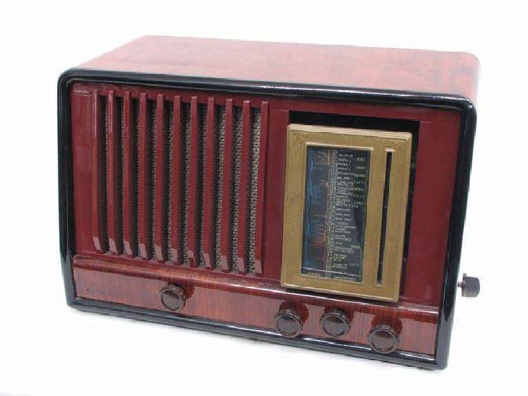 Apparecchio radio da tavolo in legno di forma parallellepipeda.\nNella parte sinistra della parete frontale troviamo l'altoparlante elettrodinamico, nella parte destra è inserito l'indicatore visivo di sintonia.\nSull'indicatore di sintonia sono presenti i nomi delle località e scale graduate con indicate le lunghezze d'onda in metri per onde cortissime, corte, medie, lunghe.\nNella parte bassa, in legno, sono inseriti i commutatori per l'accensione e la regolazione del volume, la selezione della frequenza desiderata.\nLateralmente è inserito un deviatore per la selezione della tipologia di onde (cortissime, corte, medie. lunghe).\nLa parete posteriore è stata sostituita con un pannello in compensato avvitato.\nAll'interno sono visibili gli alloggi delle 5 valvole (mancanti), il circuito supereterodina e una bobina dell' altoparlante. E' mancante la parte restante dell'altoparlante.