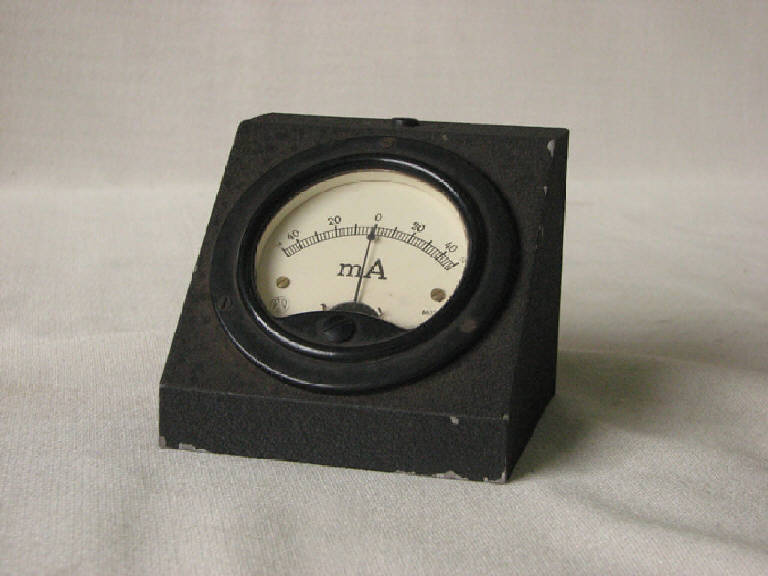 quadrante tondo inserito in un supporto a sezione di triangolo rettangolo.Scala 5-0-5 con ago che ruota attorno ad un asse posto nella parte bassa del quadrante