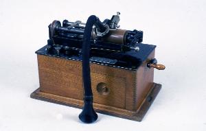 Il fonografo è costituito da una base in legno, all'interno della quale è situato il motore a molla, e da un piano superiore in ghisa, dove si trovano il mandrino e la testina di riproduzione. La base è provvista di un cassetto sul lato anteriore. Il piano superiore è sollevabile per accedere direttamente al motore a molla, azionato dalla manovella posta sul fianco destro dell'apparecchio. Il motore mette in rotazione il volano posto sul lato sinistro del piano; nel volano è innestata una vite senza fine proseguente nell'asse su cui è fissato il mandrino. La vite senza fine, ruotando, spinge il supporto della testina lungo la guida parallela al mandrino. ll supporto destro del mandrino è serrato con una chiusura a chiavistello ed è apribile per l'inserimento del cilindro. Nella parte anteriore del piano è situata una manopola in metallo per la regolazione della velocità di rotazione e una leva. Il fonografo è accessoriato con un tubo rivestito di tessuto e terminante con un imbuto in ebanite per l'ascolto dell'incisione.