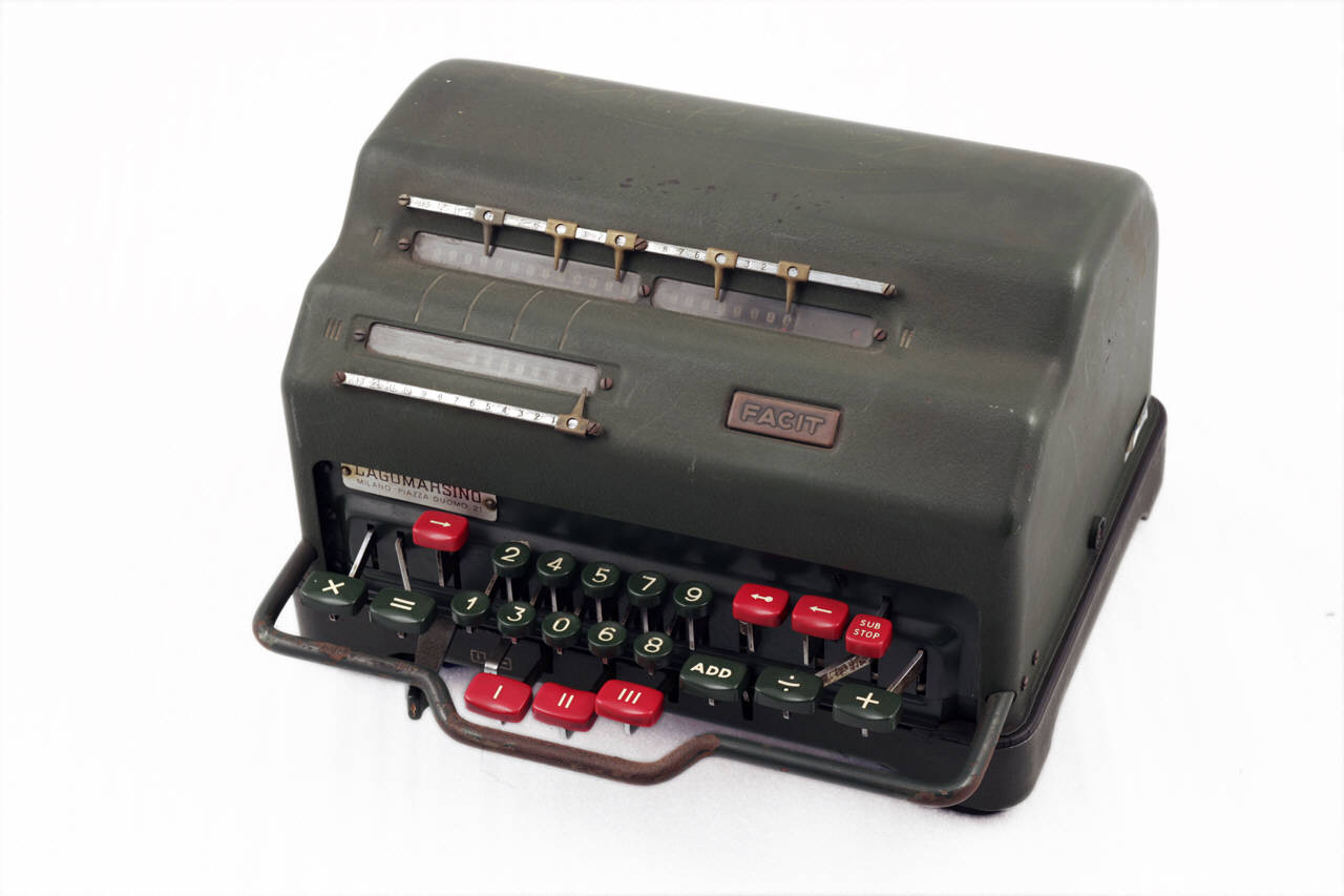 Calcolatrice elettromeccanica verniciata di verde, costituita da una base poggiante su quattro piedini di gomma, e da un coperchio che racchiude il motore e i meccanismi di funzionamento. Sul lato anteriore, la macchina presenta una tastiera ridotta con dieci tasti in plastica verde, numerati da 0 a 9 e disposti su due file. Ai lati della tastiera sono situati i comandi delle operazioni e della computazione dei valori sul totalizzatore; la calcolatrice inoltre è dotata di tre tasto rossi per lo spostamento degli ordini decimali delle cifre selezionate. La macchina è provvista di un sistema di controllo della cifra impostata, costituito da un indicatore di nove spazi posto al di sopra della tastiera. Nella parte superiore del lato anteriore sono collocati il totalizzatore a tredici spazi e il contatore a otto spazi. Tre diversi tasti in plastica rossi, posti anteriormente alla tastiera, comandano l'azzeramento dell'indicatore di controllo, del contatore e del totalizzatore. Svitando la copertura superiore si accede al motore elettrico e alla parte meccanica. Sul lato posteriore si trova una presa bipolare per il collegamento della macchina alla rete di alimentazione.