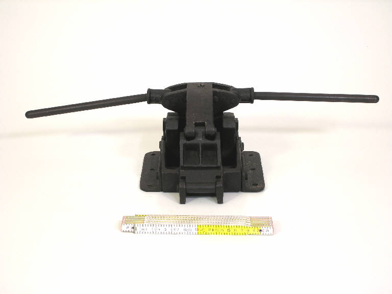 L'oggetto è realizzato in bronzo in unica fusione. Possiede una base in cui si infilano i due tratti contrapposti della reggia da stringere, e due leve per stringere e sigillare. La base possiede due piastre forate, per il fissaggio dello strumento al piano di lavoro