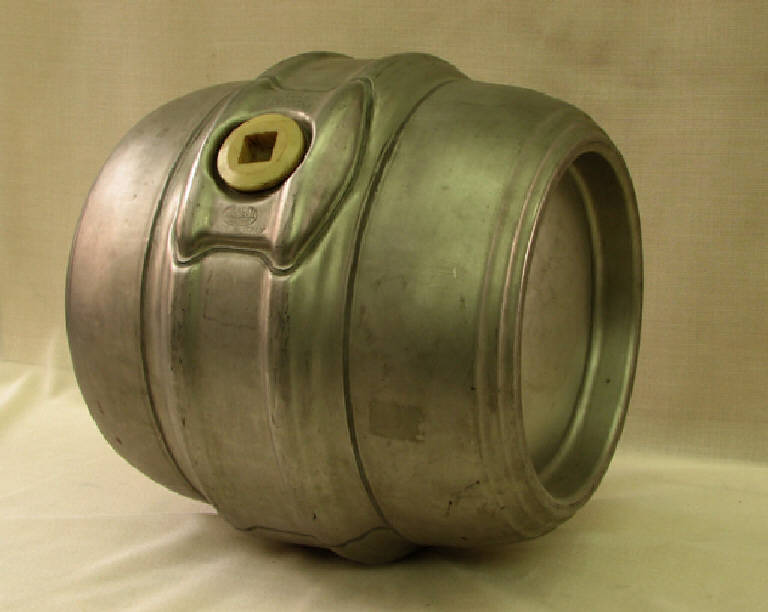 Barile in acciaio inox 18/10 di forma cilindrica con spigoli arrotondati. Il corpo centrale è profilato e i fondi sono imbutiti. Sulla parete laterale è presente un foro con un tappo in plastica.