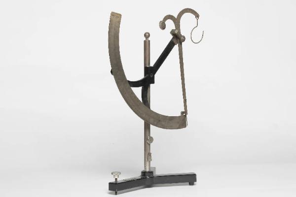 Lo strumento è costituito da un ritto che porta il quaadrante ad arco della bilancia. Un ago indica sull'arco con un'estremità, mentre all'altra viene sospeso il provino. La lettura sull'arco è direttamente in denari. E' presente una doppia scala per l'uso "con peso" e "senza peso" ed un pesino è appeso ad un gancino apposito. La base è a tre piedi, uno a vite per la regolazione in piano dello strumento