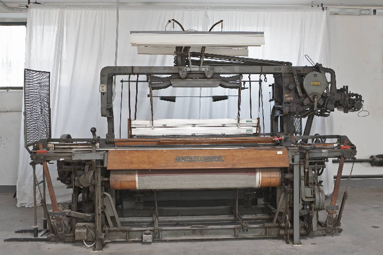 L'oggetto completo è costituito da un telaio e da molte parti a corredo e di ricambio. Il telaio è del tipo 4x2, a ratiera, con 8 licci; etichetta metallica: "OMITA Spa - Albate - Como - Italia - Tipo R2/25 - 145 - N°01508 - anno 1965"; è corredato da due navette, inserite a destra nelle apposite sedi e da un uncino per l'ordito (collocato a destra, vicino alle navette); possiede un motore con etichetta: "Tecnomasio IT. Brown Boveri - Milano - T: 8, 11, 2509/48 1964; MW126a". AA telaio / AB-AC paranavette / AD portaspolette / AE ratiera di ricambio / AF-AG puleggia / AH-AI pezzo a camme / AL-AM-AN spada per lancio navetta / AO supporto a gancio per ratiera / AP contagiri / AQ stella su catena / AR-AS rocchetto per ordito / AT catena di trasmissione / AU regolo/fermo / AV spessore/distanziale / AZ braccetto regolatore / BA-BB-BC-BD carta continua a cilindro / BE asta acciaio / BF pettine / BG-BH subbio legno / BI asta 10x10 / BL cassetta per 4 navette / BM-BN-BO-BP navetta (n°4) / BQ-BR-BS-BT contrappeso (n°4) / BU-BV-BZ freno / CA-CB braccio distanziatore / CC braccio distanziatore con movimento a 360° / CD-CE-CF cavallotto frenante / CG-CH pezzo a camme / CI freno / CL braccio distanziatore a molla / CM-CN colonna-guida acciaio con foro di lubrificazione / CO lamella di appoggio per portanavette / CP-CQ micro / CR-CS spessore-distanziale / CT sequenza di "tapparelle" a pioli / CU-CV centratore / CZ catenella regolabile per sospensione licci (serie, n°20) / DA-DB molla / DC molla (serie n°27) / DD-DE ruota dentata materiale sintetico / DF-DG eccentrico frenante / DH-DI navetta / DL-DM bronzina in plastica / DN-DO-DP fermo-spessore in plastica per bronzina / DQ-DR-DS carta continua a cilindro.