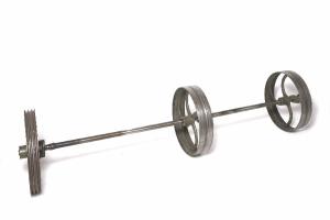 La macchina è completamente smontata. E' un torcitoio a cilindro, del tipo "a pancia in dentro" o "iperbolico" da 100 fusi circa (come viene descritto nell'atto di accettazione delle macchine da parte del Comune di Garlate). Sono state rilevate le seguenti componenti, in gran parte corredate da un cartellino manoscritto che ne riporta la descrizione: vedi file "00581.doc"