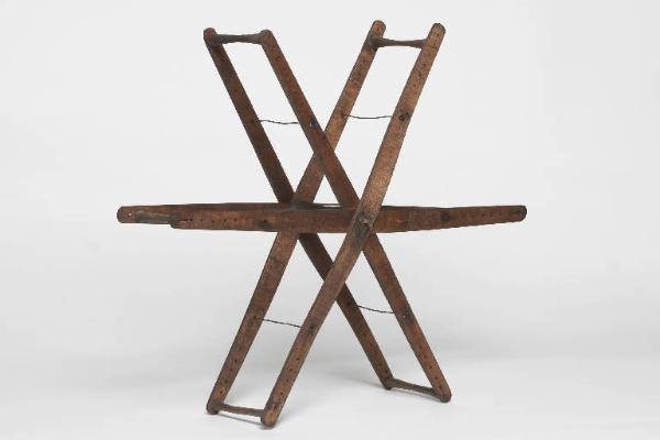 L'oggetto è formato da coppie di listelli che, intersecandosi nel centro, formano un aspino a sei raggi. Le terminazioni dei listelli possiedono una fila di fori che permettono l'inserimento in posizione regolabile del perno tornito trasversale che forma l'appoggio per la matassa