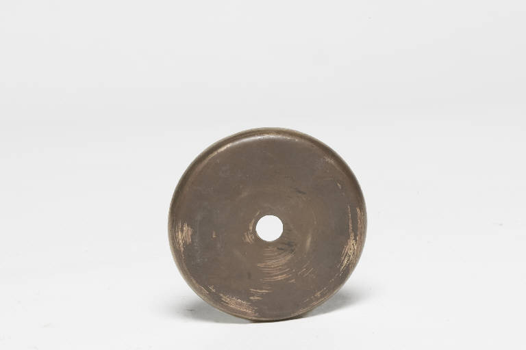 L'oggetto è una sorta di coperchietto in ottone, con margine levigatissimo piegato per alcuni millimetri verso il basso e con un foro centrale. I 10 oggetti della serie sono singolarmente contrassegnati con lettere da A a L
