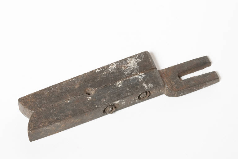 L'oggetto è costituito da una coppia di barrette in acciaio con le estremità arrotondate, tenute unite da due viti. Una delle due si prolunga in un supporto a due bracci (che alloggerà in apposita sede della macchina di cui la stribbia è accessorio). Fra le due barrette, circa a metà della lunghezza, un'apertura circolare (in cui alloggia il filo dopo essere passato fra le due barrette vicinissime)