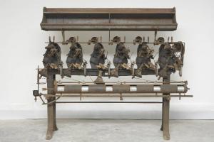 La macchina possiede 6 teste, per l'avvolgimento del filo su coni di cartone che vengono inseriti sull'apposito supporto. Una serie di tendifilo garantisce la corretta tensione del filo in avvolgimento. Sul fianco del vassoio portarocche presente nella parte alta, una fusione porta il nome dell'azienda che ha assemblato e commercializzato la macchina: "Tessilmeccanica Lombarda - Milano - Italia - Missaglia". Ciascuna delle teste porta, in fusione, il nome dell'azienda produttrice: "Leesona Made in USA". Su ciascun braccio, in fusione "50-1-55" (codice del pezzo)