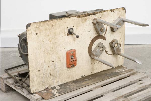 L'oggetto è costituito da un banco in ferro su cui è montata la macchina: questa ha il corpo in ferro verniciato di verde, che porta il motore e da cui emerge la struttura rotante a 4 bracci cromati: su questi si infila la matassa che viene energicamente distesa all'avvio del motore. Sul motore etichetta metallica: "S.A Elettromeccanica Enrico Bezzi - Milano - 1959"