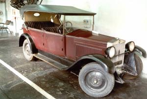 Autovettura con carrozzeria a torpedo, verniciata di bordeaux, e parafanghi in lamiera di colore nero. Nella parte anteriore si trovano il cofano a copertura del motore, apribile da entrambi i lati per le operazioni di manutenzione. La vettura è provvista di due fanali anteriori di forma circolare, sistemati sui parafanghi, ai lati della calandra e di un catadiottro posteriore posto sul parafango destro. Lungo i fianchi dell'automobile si trovano quattro porte d'accesso all'abitacolo dotato di quattro posti. La capottina apribile in tela a copertura dei sedili si aggancia al parabrezza, lasciando tuttavia aperti i fianchi dell'abitacolo. Una ruota di scorta è sistemata sul retro della vettura. Il posto di guida, sistemato sulla destra, dispone di un cruscotto sul quale si trova il quadrante del tachimetro/contachilometri. L'automobile monta un motore a quattro cilindri con valvole in testa e albero a camme, con trasmissione ad albero cardanico sulle ruote posteriori e cambio dotato di tre marce più retromarcia.