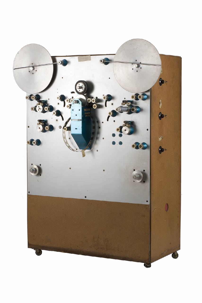 Questa stampatrice si presenta come un parallelepipedo in legno e metallo sulla cui parete frontale sono inserite le bobine per l'avvolgimento delle pellicole e diversi cilindri guida pellicola. Al centro si ha il dispositivo di duplicazione.