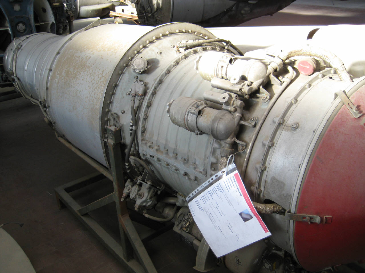 Motore a turbogetto con combustore cannulare a 7 tubi di fiamma. Il propulsore ha sezione circolare, con presa d'aria frontale chiusa da un coperchio di colore rosso. Nella parte anteriore è posto il compressore assiale a 7 stadi che convoglia e accellera il flusso dell'aria verso il combustore. A valle del combustore si trova la turbina assiale monostadio, che, azionata dal flusso dei gas combusti, mette in rotazione l'asse del compressore. Oltre la turbina è sistemato il cono di scarico.