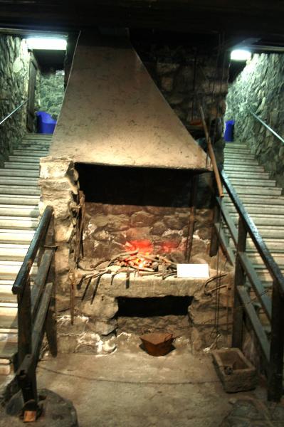 Forgia. Struttura in muratura refrattaria, utilizzata per il riscaldamento del metallo. E' composta da un bacino superiore per il riscaldamento del pezzo, una vano inferiore per facilitare i movimenti del fabbro, una cappa per la raccolta dei fumi. \n\nCorredano l'oggetto: \n- alcuni attrezzi (14) da lavoro come pinze, tenaglie e martelli\n- alcuni chiodi (8) a esempio di oggetti realizzati nella fucina.