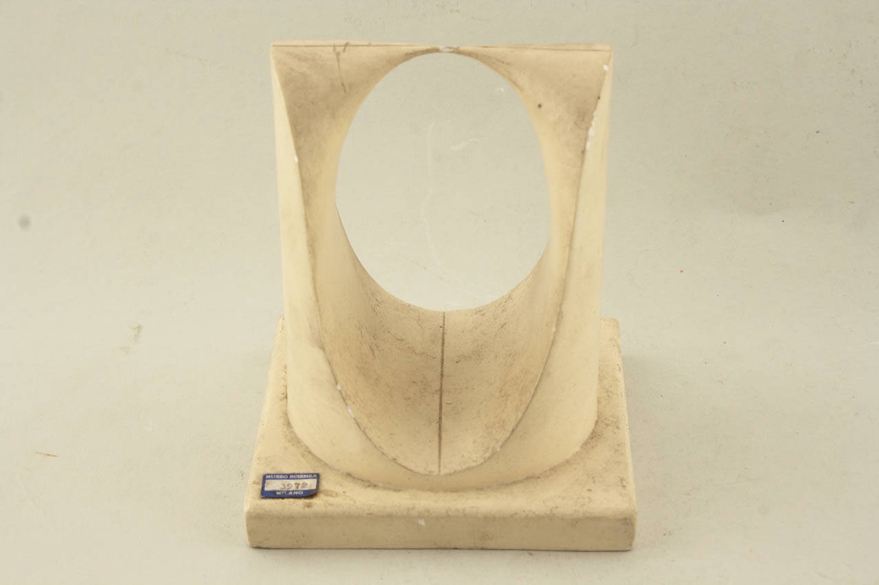 Il modello, una forma sagomata in gesso bianco, rappresenta una superficie luogo di punti dello spazio le cui coordinate soddisfano un¿equazione di terzo grado (cioè "cubica" o di "III° grado"), con tre punti singolari (o di irregolarità della superficie), due di tipo doppio conici immagginari e uno di tipo doppio biplanare reale.