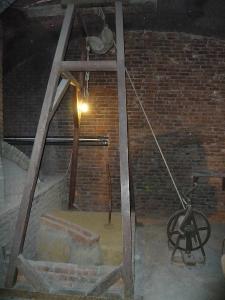 Struttura in legno che porta appeso, ad un gancio posto al centro, un paranco a mano costituito da un sistema di due carrucole collegate da una fune. La fune è poi avvolta sul cilindro di un argano. Questo consiste in un cilindro orizzontale (tamburo) e una ruota dentata fissati l'uno all'altro e ruotanti attorno a un asse comune. La rotazione è impressa mediante una maniglia in ferro collegata alla ruota mediante un ingranaggio dentato.\nIl paranco è disposto sopra la forma per campana parzialmente interrata vicino al forno a riverbero.