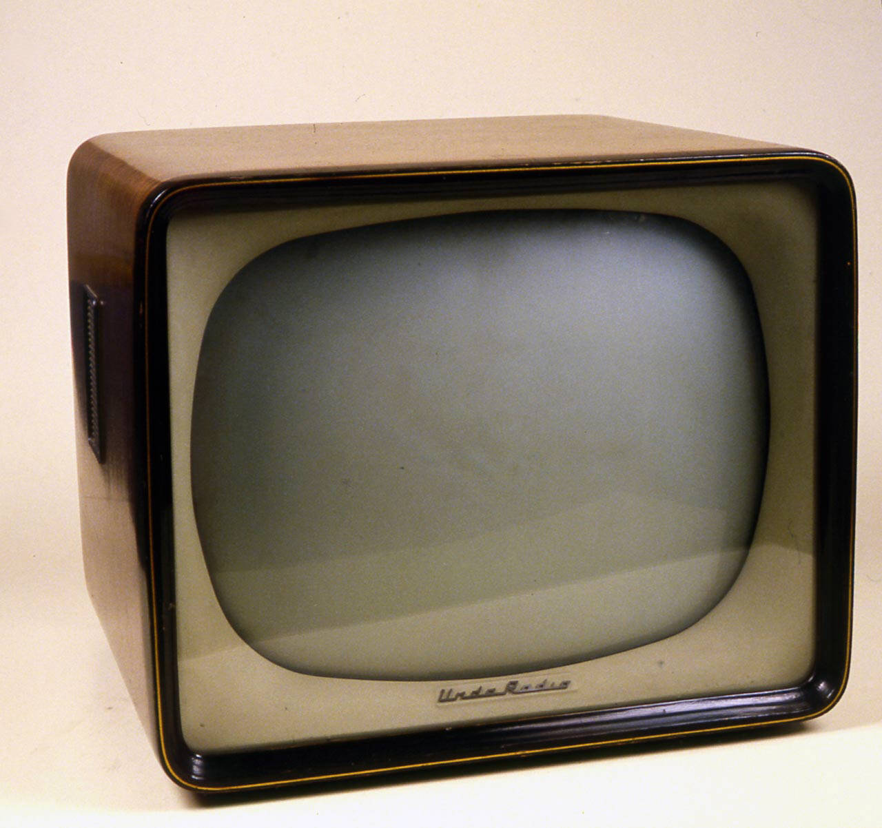 Televisore in legno con profili e bordi arrotondati. La parete frontale, con bordi verniciati color beige, è interamente occupata dallo schermo 21 pollici del cinescopio rettangolare.\nSul lato destro si trovano un selettore per le bande VHF (con indicazioni da A ad H) e la regolazione della sintonia, tre manopole per la regolazione di contrasto, luminosità, accensione e volume. Le pareti laterali presentano griglie per l'aerazione e la protezione dell'altoparlante.\nIl retro è coperto da un pannello forato per l'aerazione e il cinescopio sporge protetto da un coperchio cilindrico in metallo. Sempre sul retro, in alto si hanno due tasti con le indicazioni 1 e 2 e, sotto, delle manopole per la regolazione di frequenza di riga, frequenza quadro, linearità quadro, ampiezza quadro, fuoco, dei fusibili, una vite per la regolazione della tensione di rete (alta, esatta, scarsa) e un connettore per il collegamento alla rete elettrica.\nAll'interno si hanno il cinescopio posto in orizzontale, il circuito a 14 valvole, più un diodo a cristallo e due raddrizzatori metallici, un altoparlante ellittico
