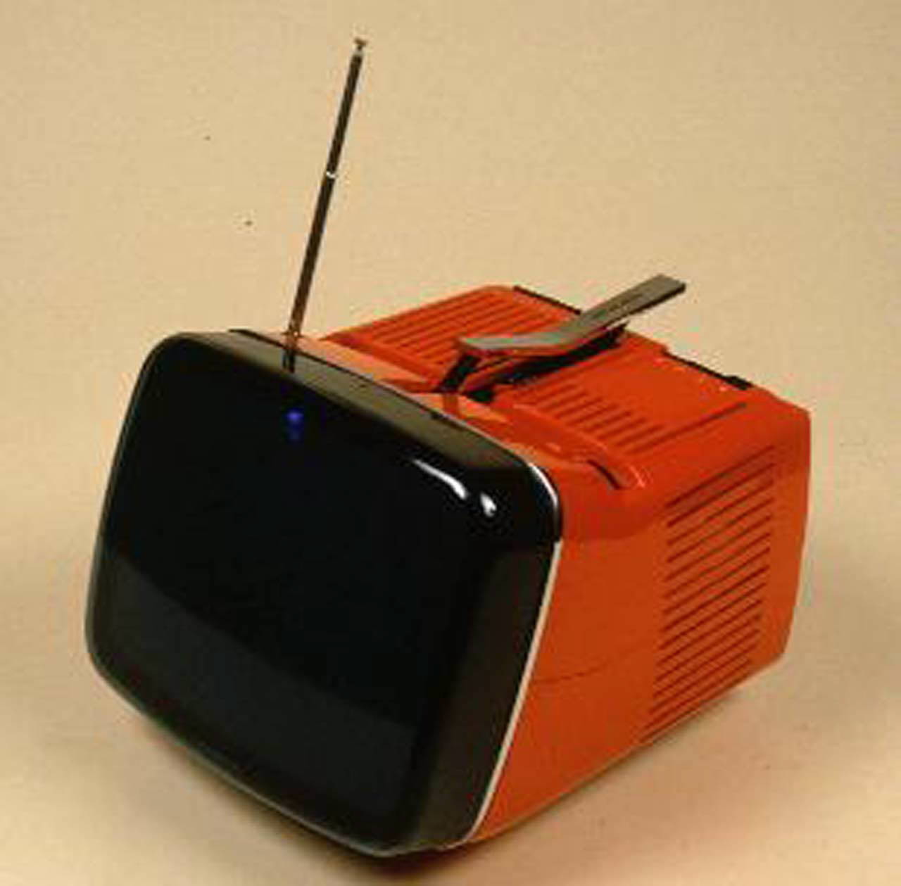 Apparecchio in materiale plastico ABS color rosso-arancio con profili arrotondati e smussati. Il cinescopio da 11 pollici con deflessione a 90°, è inclinato per consentire una visione facilitata. La scocca è arrotondata e con bordi smussati. Nella parte superiore si trovano i comandi d'uso per l'accensione, la regolazione di volume luminosità e contrasto, la selezione dei canali VHF e UHF preselezionati. Nella parte superiore si ha anche una maniglia estraibile in metallo. Sul retro del televisore si hanno le prese per il collegamento alla rete elettrica, alla batteria interna ricaricabile, ai canali VHF e UHF, per un altoparlante esterno, il selettore per antenna interna o esterna (300 Ohm). Il circuito interno di funzionamento comprende 20 diodi a cristallo, 30 transitor, 3 raddrizzatori al Selenio. I principali componenti del circuito sono sistemati nella parte bassa per facilitare le riparazioni e la manutenzione. Sempre all'interno si trova l'altoparlante ellittico. Ci sono due antenne, una incorporata a stilo per VHF e una a dipolo per UHF.