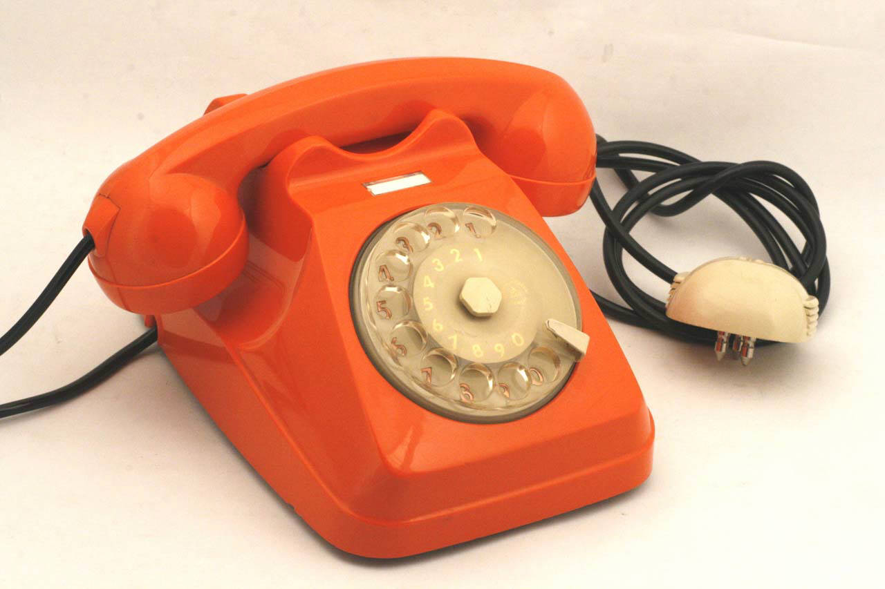 Apparecchio da tavolo a posta mobile, costituito da una monoscocca in plastica stampata color arancione che racchiude la suoneria e i meccanismi del combinatore. Nella parte anteriore della scocca è presente un foro da cui fuoriesce il disco combinatore in plastica trasparente a dieci cifre da 1 a 0. Il microtelefono, sempre in plastica arancione, poggia direttamente sui due vani ricavati nella parte superiore della scocca. In questi due vani sono presenti due tasti di interruzione linea con funzioni di forcella. Il microtelefono racchiude il trasmettitore (microfono a carbone) e il ricevitore (a bobina e calamita), uniti da una parte centrale che funge da impugnatura. Dal microtelefono fuoriesce un filo in plastica morbida di colore nero che lo collega al corpo del telefono. Sotto al telefono è presente una rotella per la regolazione del volume della suoneria. Dalla base fuoriesce il cavo con spina a tripolare.