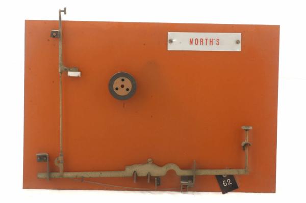 Cinematismo costituito da due elementi principali in acciaio. La leva sagomata del tasto ingrana direttamente il martelletto portacaratteri (riportante i caratteri "B" e "b") per mezzo di un tirante. Il bottone del tasto è in celluloide con sfondo binaco riportante il carattere "B". Il movimento di ritorno del tasto è guidato dalla molla agente sulla leva del tasto. Il cinematismo è fissato ad un pannello in bachelite.