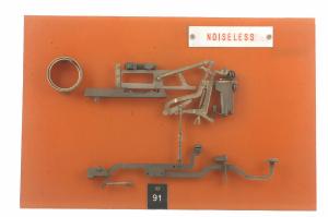 Cinematismo costituito da tre gruppi fondamentali di leverismi: la leva del tasto si collega, tramite un tirante registrabile, ad un'articolata leva centrale che spinge, tramite un tirante, il carrello con il martello portacatteri. I caratteri riportati dal martello sono: "Y", "y" e "7". Il bottone del tasto è in celluloide trasparente con sfondo bianco riportante in nero il carattere "J". Il movimento di ritorno del tasto è guidato da due molle a torsione che agiscono una sulla leva centrale e l'altra sulla leva del tasto. Il cinematismo è fissato ad un pannello in bachelite.