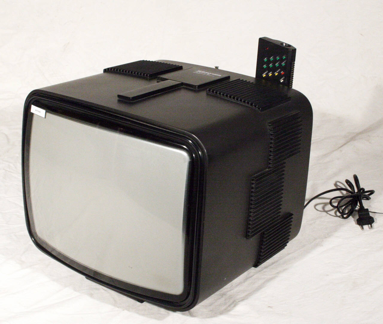 Televisore con mobile in plastica nera opaca e parete frontale occupata dallo schermo del cinescopio da 16 pollici autoprotetto con angolo di deflessione di 110. Il televisore poggia su una base in plastica nera. Sui lati sono applicate delle griglie in plastica a protezione dell'altoparlante e per l'aerazione.\nNella parte superiore si hanno una maniglia estraibile per il trasporto e , dietro ad uno sportello, i tasti per la commutazione ciclica dei programmi e i tasti per la regolazione della sintonia fine per la ricerca manuale dei canali. Si hanno inoltre viti per la regolazione del colore, della luminosità, del volume, del contrasto.\nSul retro, tutto a griglie verticali per l'aerazione, si trovano l'interruttore di accensione, arancione, un'antenna a stilo incorporata per VHF, una presa per cuffie e amplificatore esterno, una presa per audiovisivi (registratori, impianti HI-Fi, telecamere, videoregistratori, ecc), una presa per antenna rotante amplificata Robot (modello Brionvega), una presa per antenna da 75 Ohm. Dal retro fuoriesce anche il cavo per il collegamento alla rete elettrica.\nE' inoltre presente un telecomando a raggi infrarossi con tasti di accensione/spegnimento, tasti per programmi, tasti per regolazione di luminosità, contrasto, volume, colore, tasti per la sintonia e memorizzazione dei canali e dei programmi. Funziona con batteria da 9V. Sul retro del televisore è presente una staffa per riporre il telecomando.