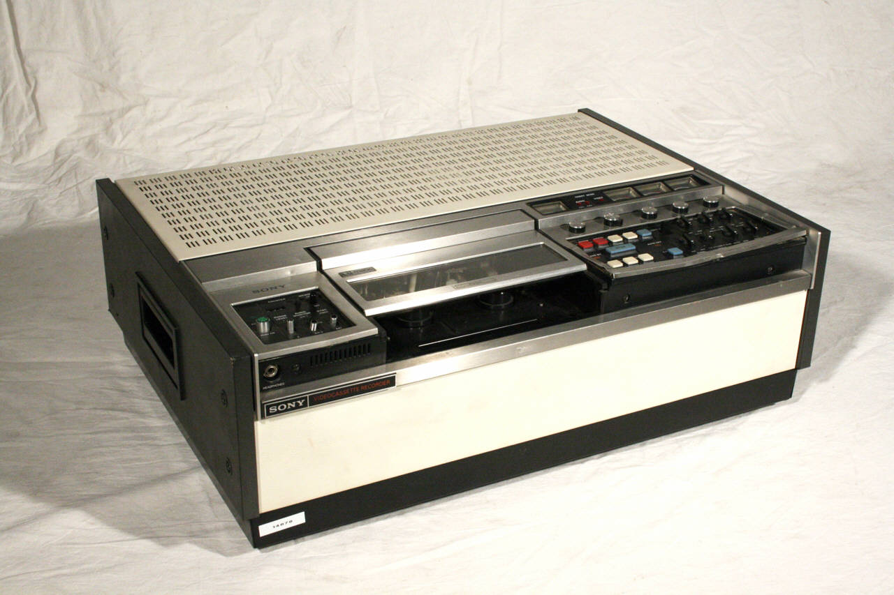 Videoregistratore U-matic di grosse dimensioni con mobile in legno laminato e metallo. Sono presenti due maniglie laterali in metallo per il trasporto.\nSulla faccia superiore sono collocati il vano per l'inserimento della videocassetta e i comandi d'uso.\nParte della faccia superiore è coperta da una griglia in metallo.\nIl vano per l'inserimento della videocassetta è chiuso da uno sportello e si vedono all'interno i fusi per la collocazione della videocassetta e le testine di registrazione/riproduzione. \nA sinistra si denotano il tasto di accensione, un deviatore per attivare la registrazione e tre leve di comando per phone level, audio monitor e sync video.\nA destra si hanno i tasti per l'uso del videoregistratore: registrazione, inserimento automatico, canali audio, pausa, avanzamento, stop, avvio, riavvolgimento, espulsione. Inoltre si hanno comandi per la selezione dei canali (audio, CH1, CH2), livelli audio e video, tracking, con relative scale di lettura e spie.