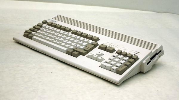 Unità principale con chassis di forma trapezoidale, in materiale plastico biancocon tastiera bianca e grigio chiaro e quattro piedini in gomma nera. La superficie superiore è sagomata per motivi estetici ed ergonomici. Nella parte alta si ha una grossa griglia di aerazione e tre spie di accensione, azionamento hard disk e floppy disk.\nLa tastiera è munita di 94 tasti divisi in tastiera vera e propria alfanumerica (standard QWERTY più alcuni tasti speciali), tasti cursore, tastiera numerica e i tasti funzione (da F1 a F10). Lettere, numeri e tasti cursore sono bianchi, gli altri grigi. \nL'unità principale contiene un floppy drive incorporato da 3.5" doppia faccia e doppia densità di capacità 880kB, con apertura sul lato destro dello chassis per l'inserimento del floppy.\nSul lato sinistro, coperto da un coperchietto in plastica, il connettore per espansioni che rende disponibili tutti i segnali del Bus di sistema.\nSul retro si trovano una porta per il mouse, due porte (control 1 e 2) per il comando giochi (paddle, joystick, penna ottica), una porta per disk drive esterno, una porta seriale RS232 e una parallela compatibile Centronics, due boccole audio per suono stereo, una presa video RGB (per collegare monitor RGB), una boccola "COMP", un connettore per modulatore RF, un connettore per l'alimentazione.\nAll'interno, sulla scheda madre AGA, sono inseriti, tra i vari componenti, il processore Motorola 68EC020, con 2MB di RAM condivisa tra chipset e processore e 512 KB di ROM. \nSul fondo dell'apparecchio, dietro a uno sportello, si trova un vano per l'inserimento di una scheda di espansione RAM da 0,5MB.\nIn dotazione si hanno anche un mouse meccanico a due tasti, un trasformatore.\nCaratteristiche tecniche:\nProcessore: \nCPU: Motorola 68EC020\nVelocità CPU: 14 MHz (versione PAL)\nHHD: none\nRAM: 2MB condivisa tra chipset e processore\nROM: 512KB\nVideo: Risoluzione massima: 800x600.\nSuono: stereofonico con risoluzione 8 bit/28 kHz\nSistema operativo di serie: KERNAL AmigaOS 3.0 con Kickstart 3.0\nAltro software di serie: Amiga BASIC