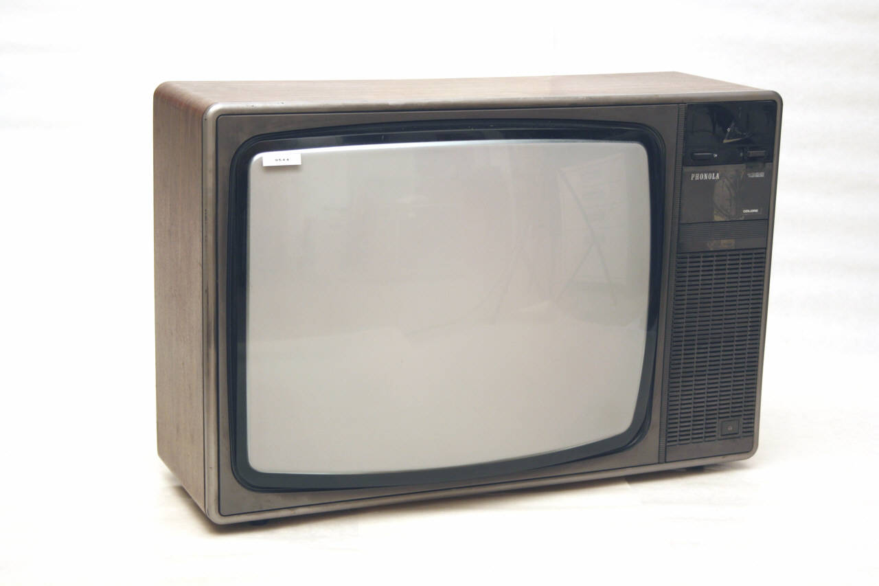 Televisore di grosse dimensione, in materiale plastico grigio scuro.\nLa parete frontale è quasi interamente occupata dallo schermo autoprotetto del cinescopio rettangolare.\nA destra dello schermo si ha una colonna di comandi e la griglia di protezione dell'altoparlante. Nella parte alta si hanno un display a Led, due tasti per accensione e mute, sotto uno sportello apribile nasconde dieci tasti con indicazioni da 0 a 9 per i canali preselezionati, quattro tasti con indicazioni 0. 1. 2. 3. per le bande d'onda, tre piccole manopole per la regolazione di volume, luminosità e intensità di colore, una leva per la regolazione del contrasto. Sotto alla griglia dell'altoparlante si ha un tasto per la deviazione dell'audio alle cuffie.\nIl retro di questo apparecchio non è al momento accessibile.