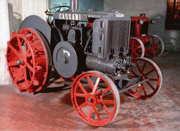 Automezzo completamente in metallo, con due ruote motrici posteriori di grandi dimensioni e munite di "speroni", detti angolari; le ruote anteriori, più piccole, hanno il battistrada liscio. Le quattro ruote sono dipinte di rosso, mentre il resto del trattore è grigio. Posteriormente, sopra le ruote, sono posizionati il volante e le leve per la guida dell'automezzo; partendo dal posto di guida, a metà del lato destro, si riconosce il volano , e sul lato sinistro il tamburo del cambio, posto poco sopra lo chassis alla stassa altezza del volano. A seguire, sempre sul lato sinistro, è sito il tubo di scarico dei fumi prodotti dal motore il quale è posto in posizione centrale con i due cilindri fissati orizzontalmente allo chassis e con le testate rivolte in avanti. Sul lato anteriore, sopra i cilindri è montato il radiatore con il tappo posto in alto. Sul lato superiore, in posizione centrale, si trova anche il tappo del serbatoio per il gasolio che poco sotto si sviluppa appiattito; sempre sul lato superiore, allineato e in posizione centrale rispetto ai due tappi di cui sopra, svetta il filtro dell'aria. Il trattore, per esigenze espositive, si presenta senza le scocche laterali; sono visibili, quindi il motore e le parti meccaniche interne prossime al motore.\nAltri dati tecnici\nMotore a 2 cilindri orizzontali, a ciclo diesel.\nIniezione diretta con pompa Spica.\nRaffreddamento ad acqua con radiatore, pompa e ventilatore (50 lt.).\nLubrificazione forzata con pompa.\nConsumo gasolio di 6 lt. per ora.\nFrizione a disco con ferodo a secco.\nDotato di tre velocità: 3,30/ 4,50/ 14 Km/h.\nTrazione su ruote posteriori munite di angolari.\nSterzo con vite elicoidale.\nRaggio di sterzo: 4,25 m..\nFreno sul cambio.